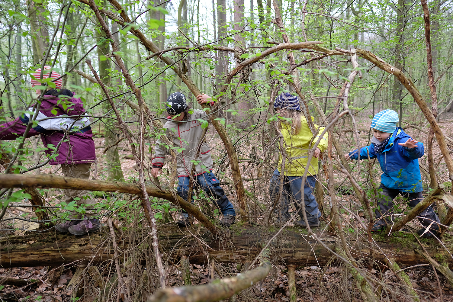Wie fröhlich es bei uns Waldkobolden zugeht, was wir den ganzen Vormittag so treiben und wie schön das Leben im Wald ist – all das kann man wohl am besten in Bildern erklären.