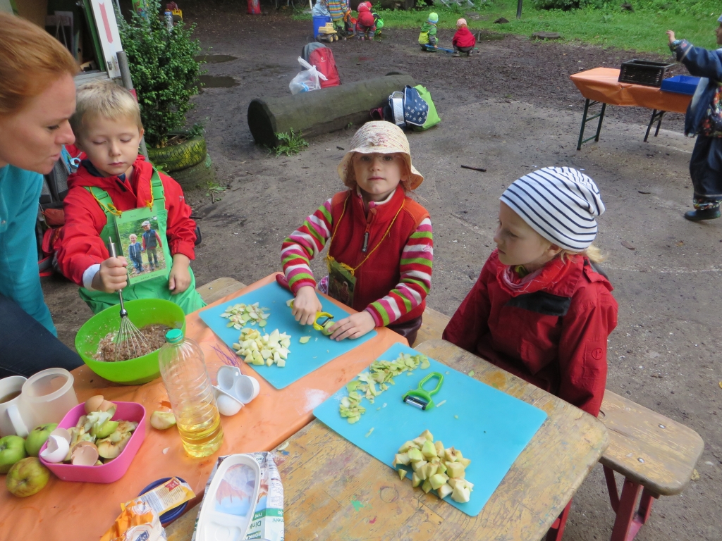 Wie fröhlich es bei uns Waldkobolden zugeht, was wir den ganzen Vormittag so treiben und wie schön das Leben im Wald ist – all das kann man wohl am besten in Bildern erklären.