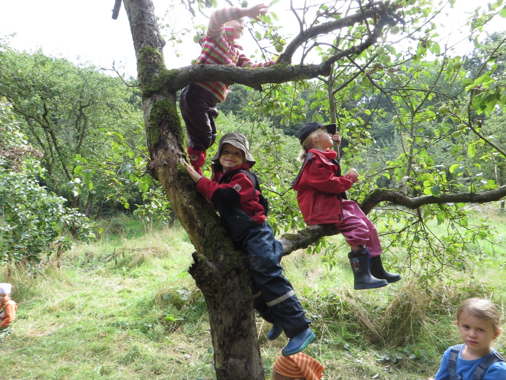 Wie fröhlich es bei uns Waldkobolden zugeht, was wir den ganzen Vormittag so treiben und wie schön das Leben im Wald ist – all das kann man wohl am besten in Bildern erklären.