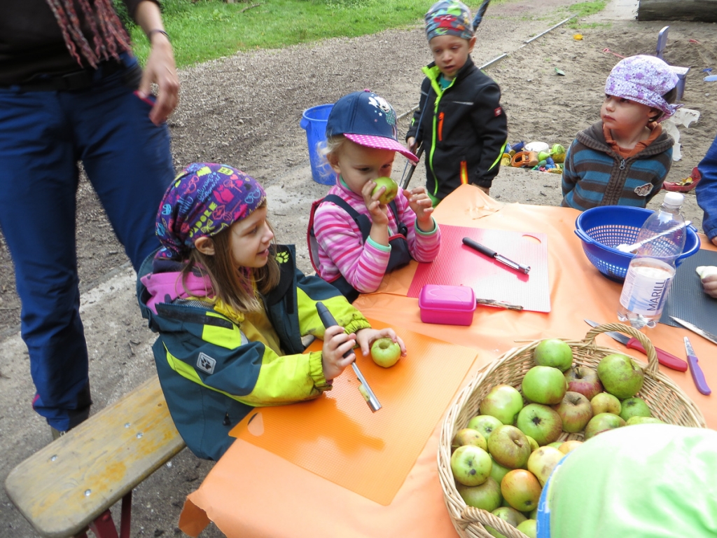 Wie fröhlich es bei uns Waldkobolden zugeht, was wir den ganzen Vormittag so treiben und wie schön das Leben im Wald ist – all das kann man wohl am besten in Bildern erklären.