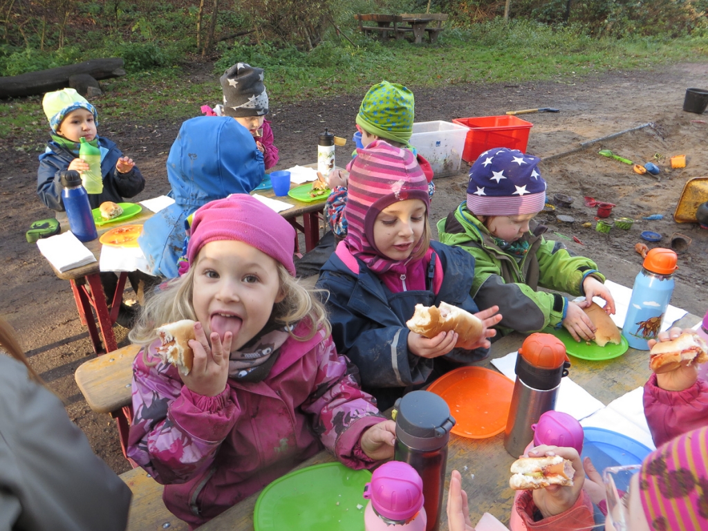 Wie fröhlich es bei uns Waldkobolden zugeht, was wir den ganzen Vormittag so treiben und wie schön das Leben im Wald ist – all das kann man wohl am besten in Bildern erklären.