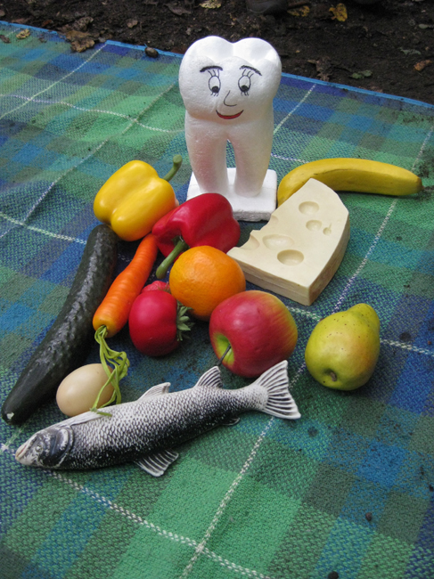 Regelmäßig kommen Frau Wessel und das Zahnkrokodil Micky zu uns in den Kindergarten. Jedes Kind erhält dann seinen eigen Becher mit Zahnbürste und einen Namensbutton. Wir üben das richtige Zähneputzen und erklären Micky, dass man dafür Zahnpasta nimmt und nicht Nutella! Außerdem erfahren wir viel über gesunde Ernährung und spielen Zahnarzt, mit richtigen Arztinstrumenten. Danach trauen wir uns auch in eine echte Zahnarztpraxis, dort heißt es dann: Zähne zeigen! Kein Problem für uns Waldkobolde, denn wir wissen, wie wir unsere Zähne lange gesund halten.